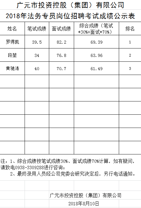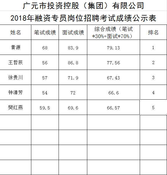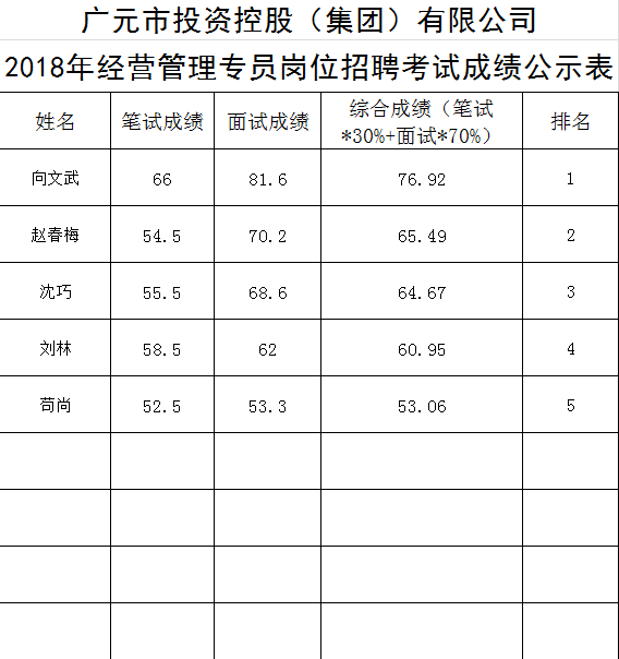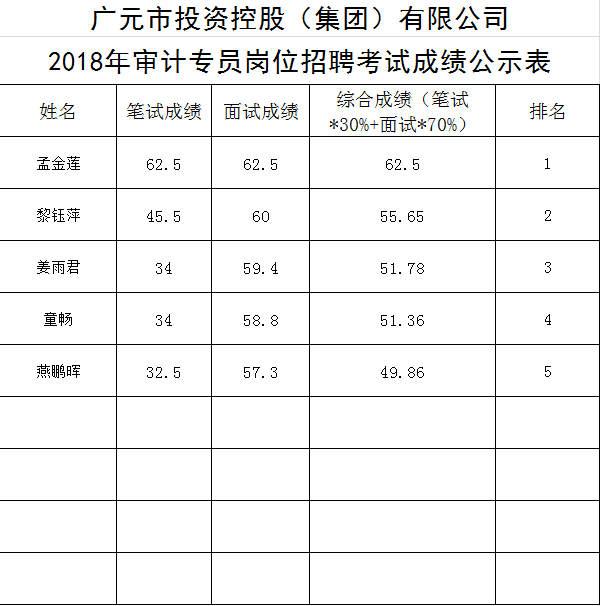 關于公開招聘工作人員的成績公示